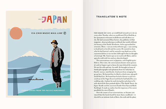 Probably working on Shiro Kashiba’s memoir and cookbook, Shiro: Wit, Wisdom and Recipes from a Sushi Pioneer. Simply having the author here in Seattle made a huge difference. Also, to have the author be a renowned chef and to have this physical space (his restaurant, Shiro’s) to go to and speak with him, or to take photographs or just experience him in his “natural environment” made a huge difference. Learning more about his art of making sushi and other Japanese cuisine was rewarding. Coincidentally, the film Jiro Dreams of Sushi came out shortly after the book was released. Shiro apprenticed under Jiro Ono, and in the book I included these original photographs of Jiro and Shiro at Haneda airport, and of the two of them hiking in the mountains outside of Tokyo, and a matchbox from Jiro’s restaurant. So it was fun to have something I worked on feel connected with this film that had reached a much wider audience.