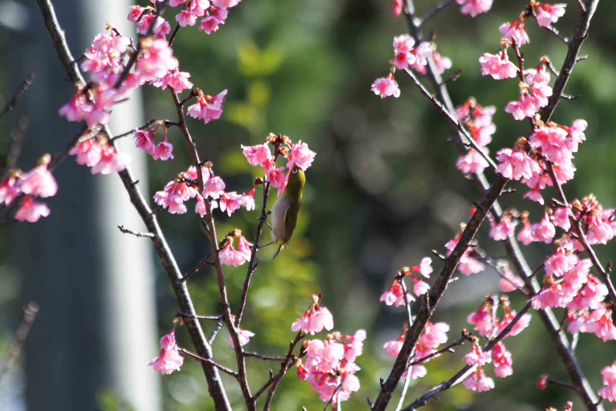 Down in Okinawa the weather has been rather warm this year. This means that along the way we’ve had some great opportunities to view this year’s cherry blossoms as they begin to bloom from southern Okinawa and work their way north. On Kume Island, there are two great spots to see sakura throughout January. During the season’s peak we get lots of bees and mejiro coming to visit the sakura, not to mention tourists.